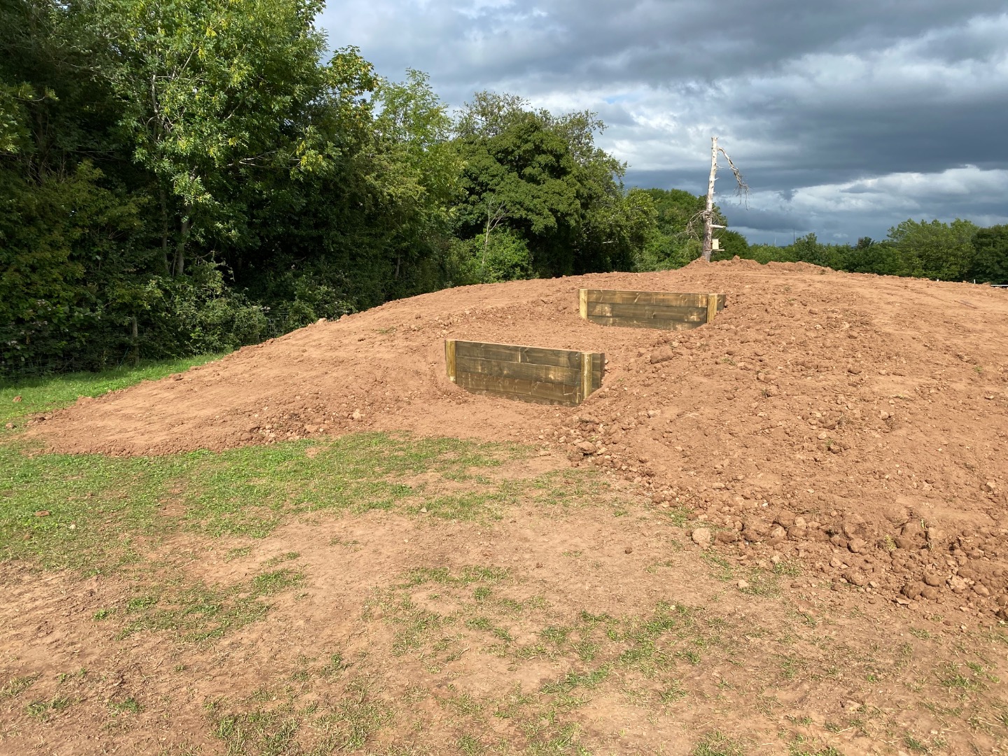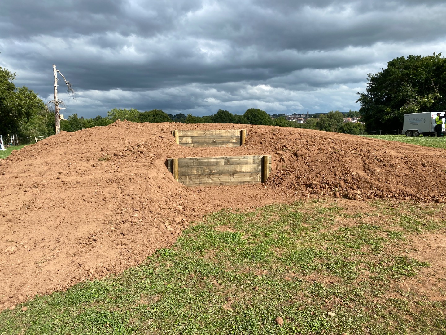 we smooth out and reshape the stockpile with shallow inclines at the sides and put a few steps or cross country jumps into it with a sleeper design.